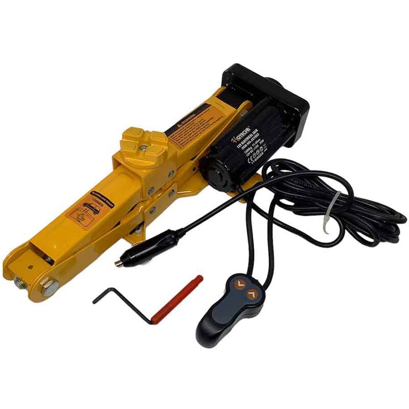 Cric elettrico a pantografo 12 volt, tramite presa accendisigari, con telecomando. Alimentazione: 12V Presa accendisigari Altezza minima da chiuso: 110mm Altezza massima: 340mm P eso massimo supportato: 1500KG (1.5 Tonnellate) Potenza: 75 watt Valigetta inclusa