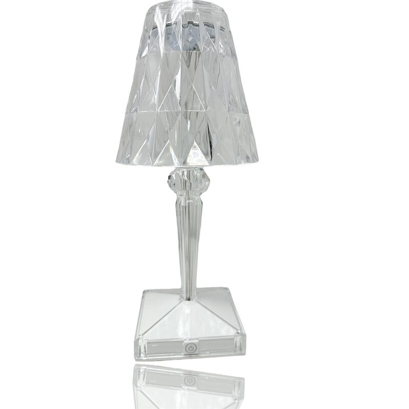 Particolare lampada da bistrot effetto cristallo è l'elemento essenziale per illuminare le tue serate e dare un tocco di colore all'atmosfera. Ottima sia come idea regalo per l'home decor che come decorazione per bar e ristoranti, questa lampada da tavolo offre diversi colori di luce a scelta tra il rosso, arancione, giallo, blu, verde, viola e così via, che puoi cambiare con il comodo comando touch. La sua versatilità le permette di adattarsi a qualsiasi tipo di ambiente o occasione. Che si tratti di una cena romantica o di un semplice momento di relax, questa lampada diamantata trasparente illuminerà le tue serate in compagnia. Si ricarica tramite cavetto usb incluso nella confezione Potenza: 1 watt RGB Flusso luminoso: 60 lm Fascio luminoso: 120° Tempo di ricarica: 3 ore circa Durata: 12 ore circa Batteria ricaricabile: 103450, 3,7 V, 2000 mAh Lunghezza cavo USB: 80 cm (alimentatore non incluso) Materiale: Acrilico Dimensioni: 26x8.5x8.5 cm Peso: 380 Gr