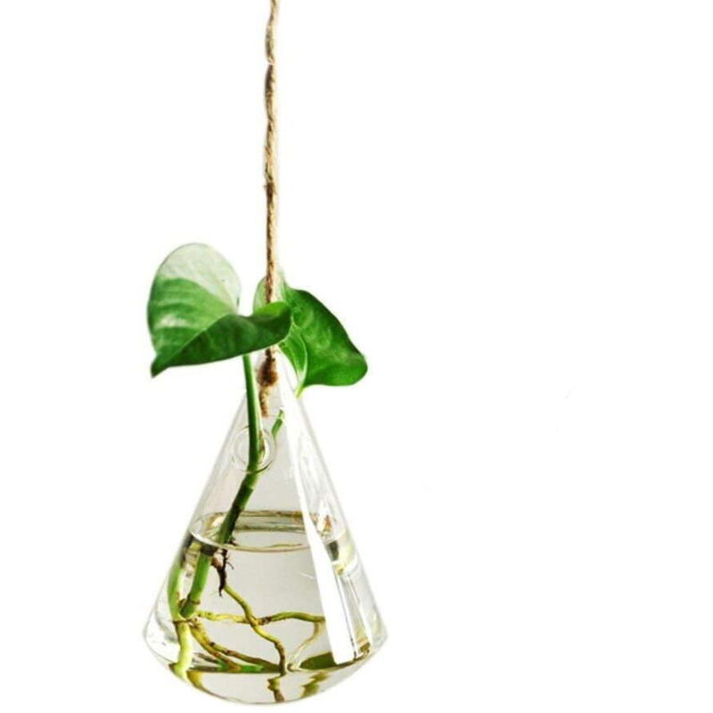 Questo è un dolce vaso di vetro sospeso in formato più piccolo. Riempi il vaso con acqua e lascia che le tue talee crescano qui prima di piantarle nel terreno. Puoi anche usare il vaso per dei piccoli fiori appena raccolti, o dei fiori secchi. Il vaso è facile da appendere. - vaso dolce per piccoli fiori - Facile da appendere alla finestra - Bel design Specifiche: Colore: trasparente Materiale: vetro