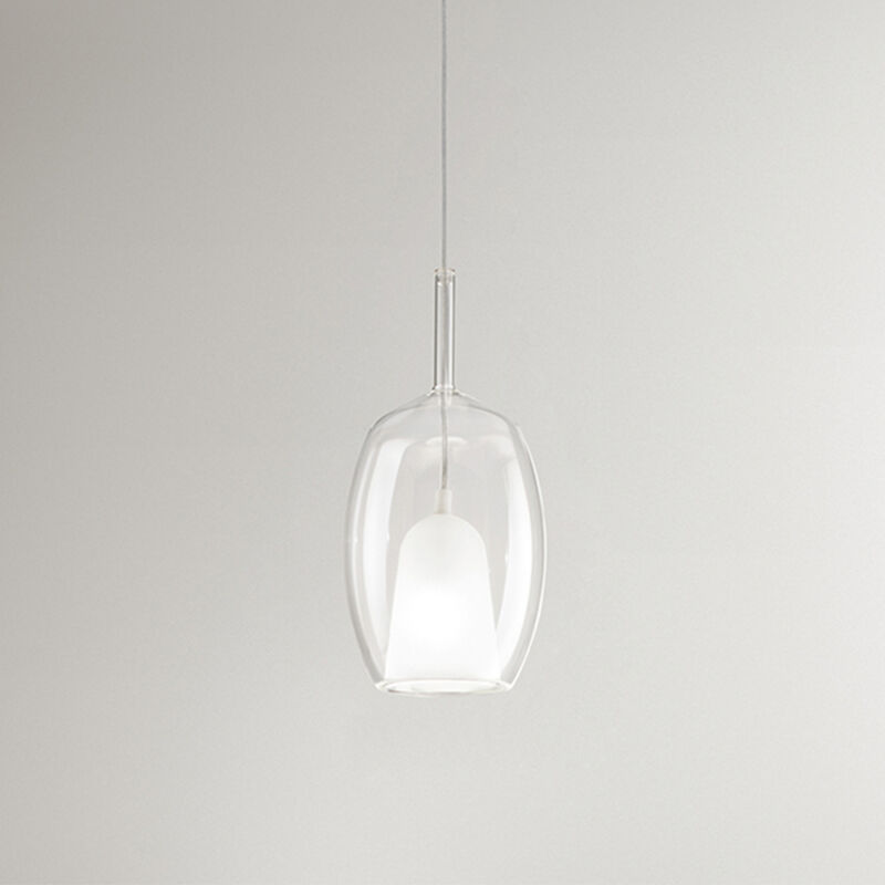 Collezione Rain COMPONI LA TUA LUCE Vetro borosilicato trasparente D.17 x H.36,5 cm (L.cavo 250 cm) 1 luce E27 max 60W (non inclusa) altezza regolabile. Collezione vetri borosilicati con incluso portalampade E27 bianco e cavo in PVC trasparente. Rosone non incluso.
