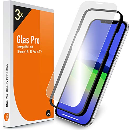 Vau Vetro compatibile con iPhone 12/12 Pro (6.1) - Pellicola protettiva in vetro temperato Pro 3 pellicole anteriori + strumenti di installazione