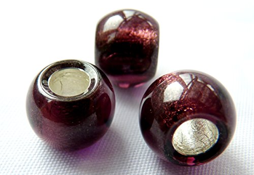 12 mm, vetro ceco foro grande stile europeo Beads - argento foderato viola - F001 (pezzi)