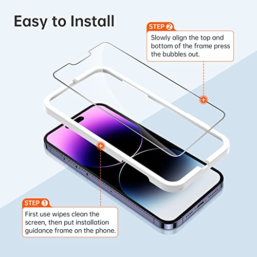 ULUQ Vetro Temperato compatibile con iPhone 14 Pro Max 6.7inch,Pellicola Prottetiva Durezza 9H,Pellicola Vetro HD,con Ausilio di Posizionamento,0.33 mm Ultra Trasparente,Antigraffio,Antibolle,3 pezzi