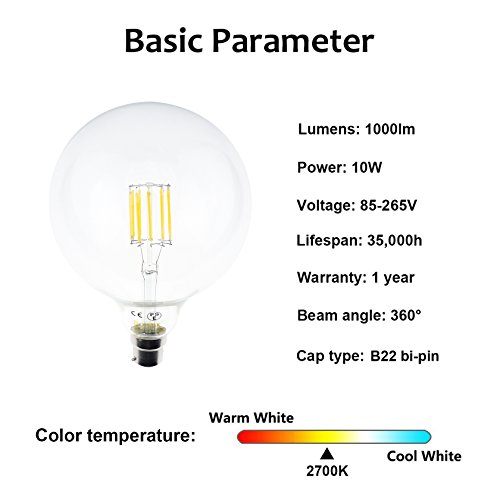 10 W G125 E27 B22, Vetro, Warm White, b22, 10.00 wattsW 220.00 voltsV