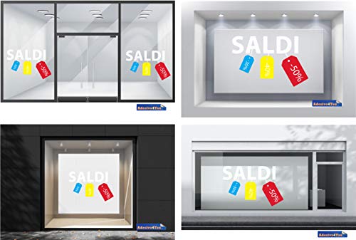 Vetrofanie Saldi SCONTI - Scritta Saldi - Decorazioni Saldi sconti - Fuori Tutto, Saldi vetrine Negozi, Stickers cartellini sconti Adesivo4You (116x80 cm.)