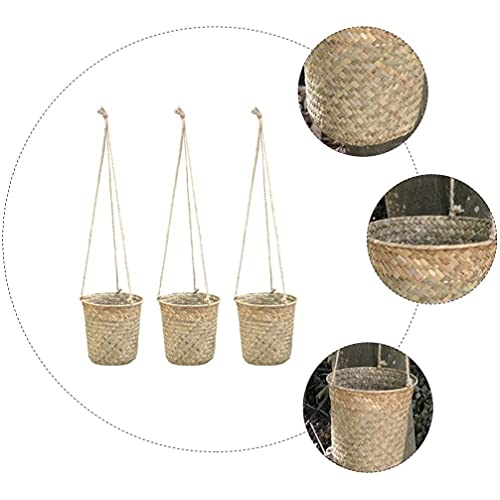 Veumoie Cesto Portaoggetti Intrecciato Un Mano nel 3 Pezzi Cesto di Vimini Appeso Un Vaso di Fiori Cesto di Piante Contenitore di Fiori per Interni Ed Esterni