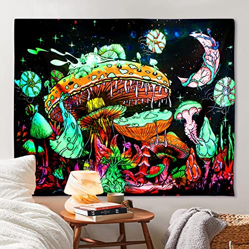 VEUWOLM Arazzo di Funghi, 130X150cm Arazzi Psichedelico Luce Nera, Arazzo da Parete Colorato con UV, Utilizzato in Camera da Letto, Soggiorno, Copriletto, Decorazione Murale
