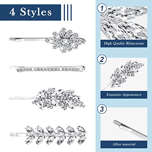 VEUWOLM 10 Pezzi Fermagli Forcine Mollette per Capelli Strass, Fermagli per Capelli Eleganti, Sposa, Diamante, Perni di Capelli per Ragazze Damigella D'Onore (Argento)