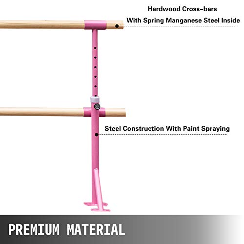 VEVOR Ballet Barra Lunghezza 3M 10 Piedi, Barra Indipendente Barra Doppia Barra Montaggio a Pavimento in Rosa, Balletto Doppia Barra da Pavimento per Scuola Danza, Studio Palestra Danza, Sala