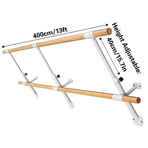 VEVOR Balletto Barra 4M in Bianco, Sbarra Montaggio a Muro Barra Doppia Barra a Parete con capacità 150 kg / 330 Libbre, Balletto Barra con Altezza Regolabile per Scuola Danza, Sala e Palestra