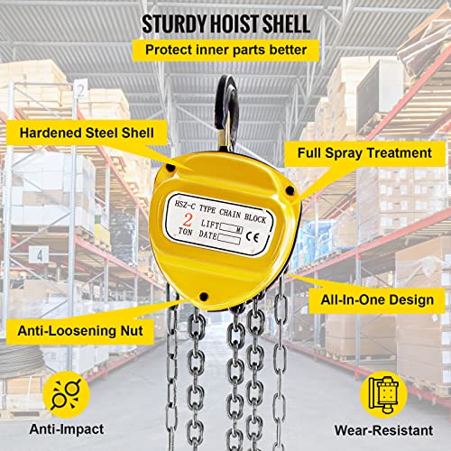 VEVOR Blocco Catena 4400 lbs/2ton per Paranco Manuale Giallo Paranco a Catena 3m in Blocco Con Leva Di Sollevamento