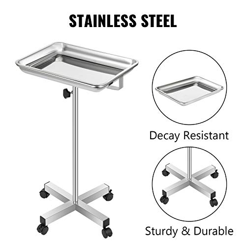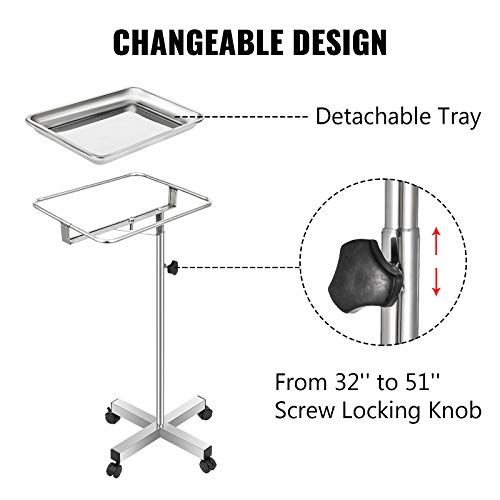 VEVOR Carrello di Acciaio del Vassoio, Altezza 82-130cm Carrello Parrucchiere, 42 x 34 cm Carrello Supporto Chirurgico Medico del Vassoio, con 4 Ruote in Nylon, Usato per Salone, Cliniche o Tatuaggi
