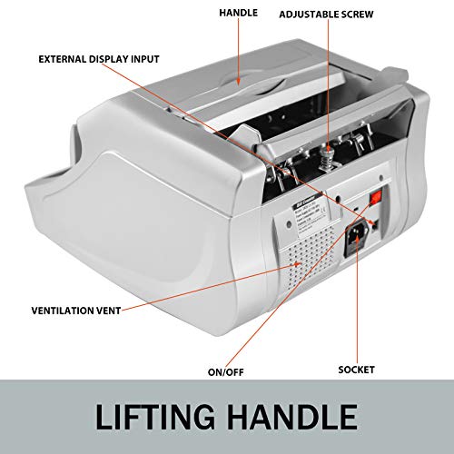 VEVOR Contabanconote professionale e Rilevatore di Banconote Contatore di Denaro con Display Esterno Uso Domestico e Aziendale 2829 Conta 300 PZ Capacità Tramoggia Rilevazione UV/MG