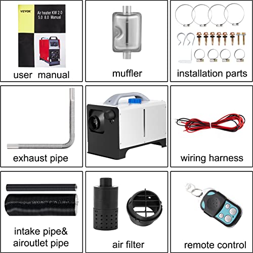 VEVOR Diesel Air Heater, 8KW Parking Heater, 12V Truck Heater, 1 Outlet Hole, with Knob Switch, Remote Control, Fast Heating, for RV Truck, Boat, Bus, Car Trailer, Motorhomes, Caravans, Bianco