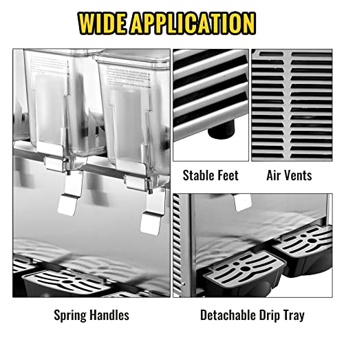 VEVOR Distributore di Bevande 36L Distributore di Bevande con Rubinetto Dispenser di Succo Freddo con 3 Serbatoi 3 * 12L