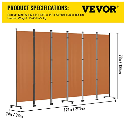 VEVOR Divisorio Pieghevole a 6 Pannelli Divisori da Ambienti in Lega di Alluminio Ferro e Tessuto Oxford, Paravento Arancione da 308x185 cm per Uffici, Case, Hotel, Ospedali, Ristoranti e Aule, ecc.
