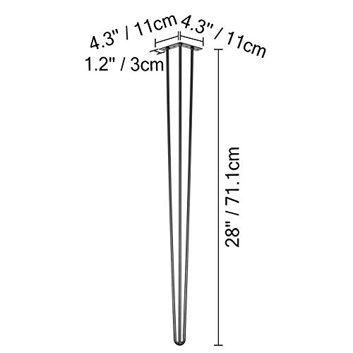 Qualità Premium. - Quantità: 4 pezzi. Colore: nero. Altezza gambe: 71,1 cm. Spessore del tubo: 1,2 mm. Le gambe da tavolo a spillo da 71,1 cm sono in acciaio al carbonio e presentano un design stabile a tre aste per una maggiore stabilità. Sono antiruggine e lisce sulla superficie con un rivestimento in polvere.