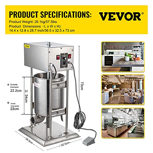 VEVOR Insaccatrice Elettrica Professionale in acciaio Inossidabile 12L Macchina della Produzione di Salsicce Elettrica inox Macchina per Riempimento di Salsicce per Cucina Ristorante Supermercato