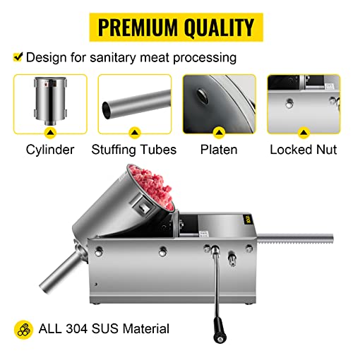 VEVOR Insaccatrice per Salsicce Orizzontale Manuale 3 L in Acciaio Inox, Macchina Riempitrice 3 L Orizzontale per Salsiccia Salumi da Tavolo Manuale Uso Commerciale Casalingo, Riempitore di Salsicce