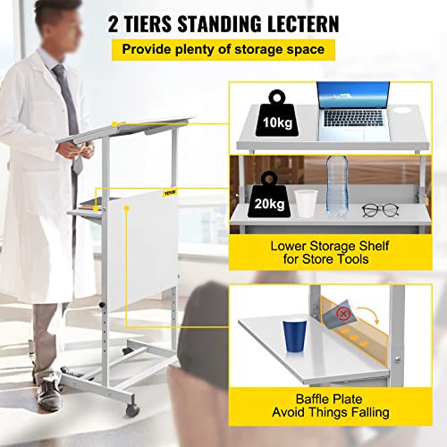 VEVOR Leggio per Podio con Altezza Regolabile 103cm-135cm, Leggio Presentazione Materiale SPCC, Podio Regolabile Capacità Tavola Superiore 10Kg Inferiore 20Kg, Scrivania Mobile in Piedi Ruote Girevoli