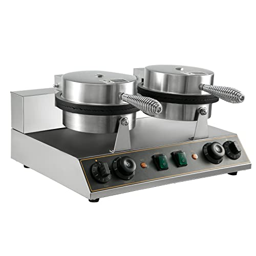 VEVOR Macchina per Waffle di Riscaldamento Elettrico, Waffle in Acciaio Inossidabile, Macchina per Waffle a Due Teste, Waffle Antiaderente Commerciale, Macchina per Waffle di Riscaldamento
