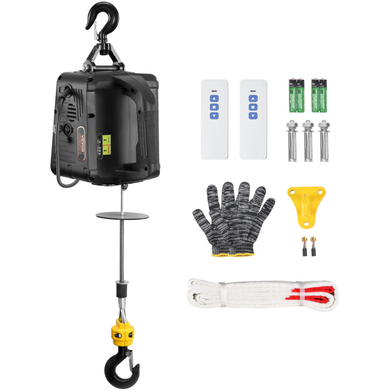 VEVOR Verricello di Sollevamento Elettrico Portatile Portatile, potente e pronto ad affrontare qualsiasi compito. Il nostro verricello elettrico non serve solo per sollevare: ti permette di sollevare in modo più intelligente. Con le opzioni di controllo manuale e wireless, il controllo è sempre nelle tue mani. Metodi di controllo 2 in 1 Telecomando wireless Grande potenza Materiale di grado aerospaziale Gancio di sollevamento ad alta resistenza VEVOR Verricello Elettrico Portatile Il verricello elettrico è molto pratico. Afferralo, collegalo e sei pronto per il sollevamento! Che tu sia all'interno o all'esterno, gestisce facilmente carichi fino a 498,95 kg. Caratteristiche principali Metodi di Controllo 2 in 1: il nostro versatile paranco elettrico ha due modalità di controllo. Utilizzare la pulsantiera per tiri rapidi a corto raggio. Oppure vai oltre con il nostro telecomando wireless da 200 piedi (circa 60 m), perfetto per attività ad alta quota. NOTA: non utilizzare il dispositivo