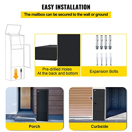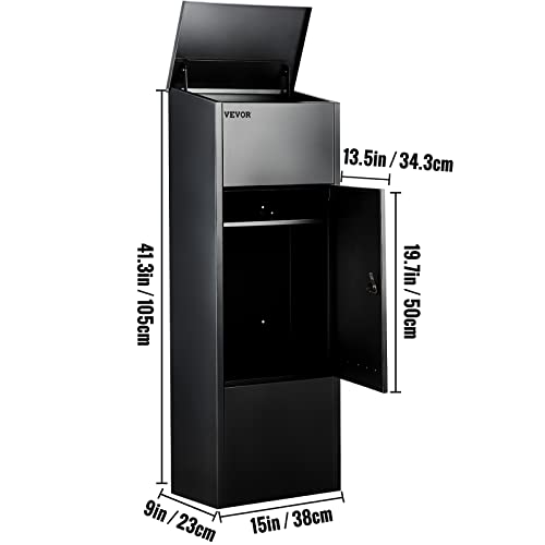 VEVOR Posta nera da 22 x 105 cm, 38 x 22,9 x 105,9 cm, pacchetto in acciaio zincato, cassetta postale con blocco codice, cassetta postale sicura con hardware, scatola di consegna per portico,