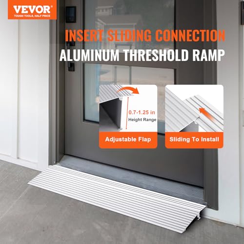 VEVOR Rampa per Soglia in Alluminio Altezza Regolabile 1,9-3,2cm, Rampa per Soglia con Passacordolo in Alluminio per Dislivelli Capacità di Carico Max. 360kg, Passasoglia in Alluminio per Ingresso