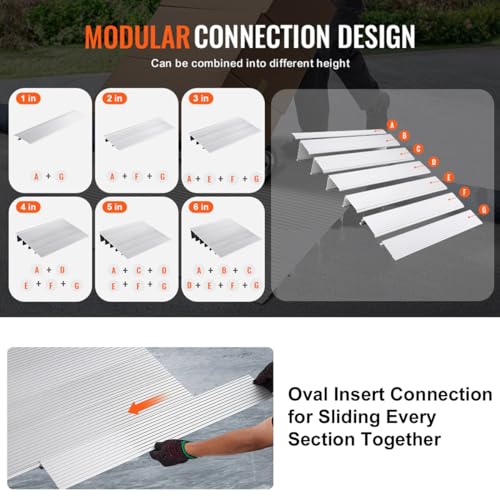 Installazione & Applicazione: la rampa per soglia è facile da assemblare. La connessione dell'inserto ovale può far scorrere facilmente ogni sezione modulare insieme. La rampa leggera è per soluzioni di trasporto sopra le scale. È una scelta eccellente da applicare all'accesso di casa, il giardino e officina.