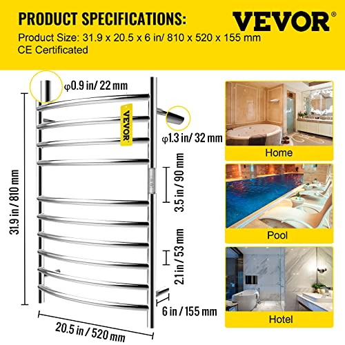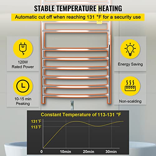 VEVOR Scaldasalviette Lucidato a Specchio a 10 Barre Curve, Riscaldatore per Portasciugamani in Acciaio Inossidabile 120 W Capacità di Carico 5 kg, Uso per Bagno o Altri Campi Domestici e Commerciali