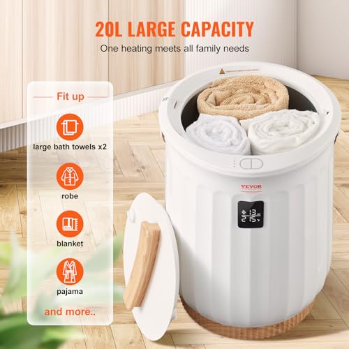 VEVOR Scaldasalviette Secchio Verticale 20 L per Bagno SPA Trattamento di Bellezza Spegnimento Automatico Blocco di Sicurezza per Bambini Tempo di Riscaldamento Regolabile, Riscaldatore Asciugamani