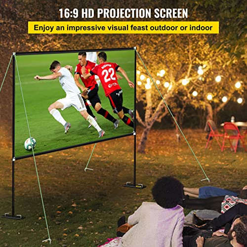VEVOR Schermo Cinematografico per Esterni, 203,2cm Schermo per Proiettore, HD 16:9 Schermo del Proiettore Portatile con Supporto in Alluminio e Acciaio, Grandangolo di 160 Gradi, per Casa, Cattedrale