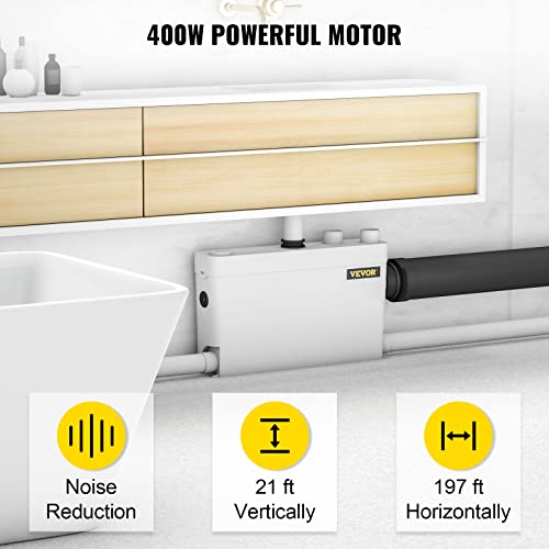 VEVOR Trituratore WC 400W 3300 RPM, Trituratore WC Maceratore 470x130x317 mm, Pompa Trituratrice per WC con 3 Ingressi 1 Lato per Pompare i Rifiuti da Servizi Igienici, Lavandini, Lavastoviglie, Docce