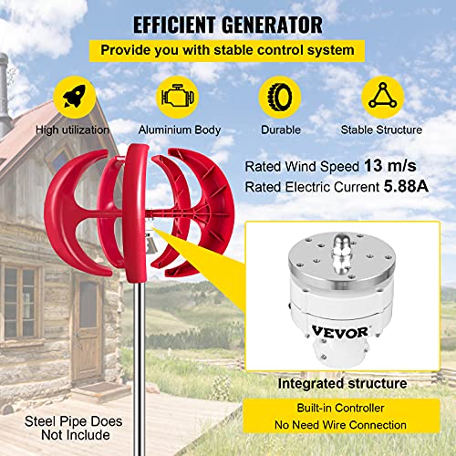 VEVOR Turbina Eolica a Forma di Lanterna con 5 Pale Generatore Eolico 100W / 12V con Controller Integrato, Uso per Sistemi di Monitoraggio, Case Mobili, Barche da Pesca, Marine e Altro Usi di Ricarica