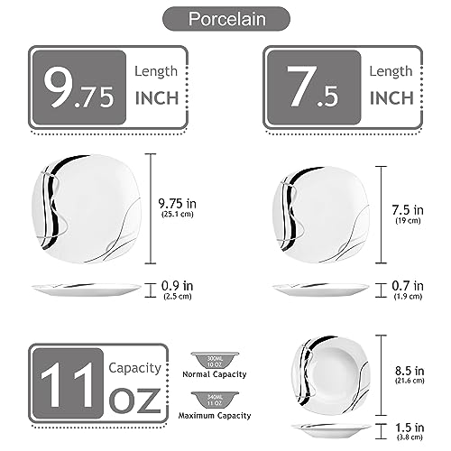 DESIGN ORIGINALE VEWEET: Servizio di piatti in porcellana bianca classica con bella decorazine, la forma leggermente quadrangolare dona una certa eleganza al servizio. Set di stoviglie si applicano perfettamente su qualsiasi tavolo o cucina. Design semplice non passa mai fuori tempo, dandosi un buon appetito per ogni giorno.