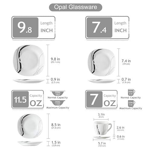 [FORTE RESISTENZA AGLI URTI]: Il set di piatti in opale è realizzato in vetro opale di qualità che è molto resistente in vetro temperato. Dopo molti test sperimentali, anche se viene fatto cadere da un'altezza di dieci metri, le stoviglie non si rompono.