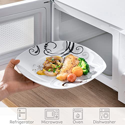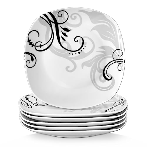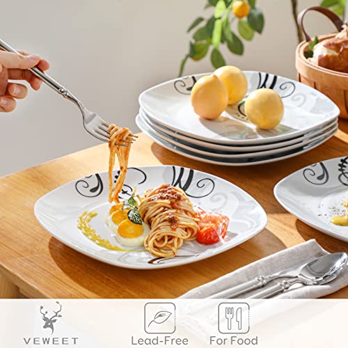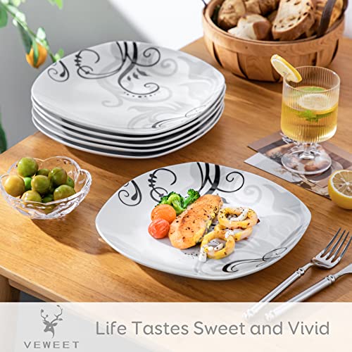VEWEET Servizio di Piatti per 6 Persone Set di 6 Piatti in Porcellana Set Piatti Moderni Quadrati da Pasta/Bistecca Servizio Piatti da Tavola per Cena, Dimensioni 24,7 cm, Collezione ZOEY