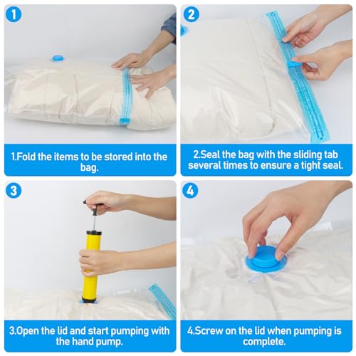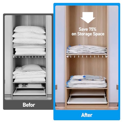 [Risparmio di Spazio] Grazie all'elevato utilizzo dello spazio, i sacchetti per la conservazione sottovuoto possono aiutarvi a sfruttare al meglio il vostro spazio limitato. Questi sacchetti utilizzano la tecnologia di sigillatura sottovuoto per comprimere gli indumenti fino a ridurli al minimo, sia che si trovino nell'armadio, sotto il letto, in valigia o nell'organizer, è facile riporre più vestiti e sfruttare al meglio lo spazio.