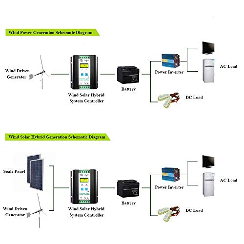 VFound Controllore ibrido solare ibrido di tipo 100W PWM di fascia alta vento 600W e pannello solare da 400W 12V/24V DC Identificazione automatica della tensione di sistema(PWM)