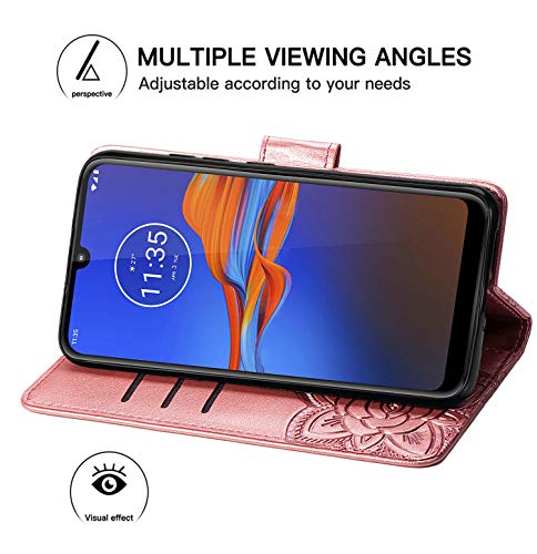 VGANA Cover Adatto per Moto Motorola E6 Plus/LMX120EMW, Romantico Rilievo della Farfalla Protettiva Portafoglio Flip Custodia.Rosa