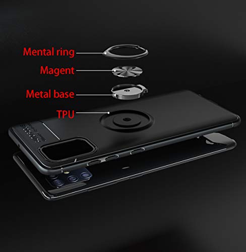 VGANA Custodia per Xiaomi Mi 10 Lite 5G, Cellulare in Silicone Ultra Sottile Calotta Magnetica Telefono Cover Veicolare con Anello Girevole A 360 °.Nero + Blu