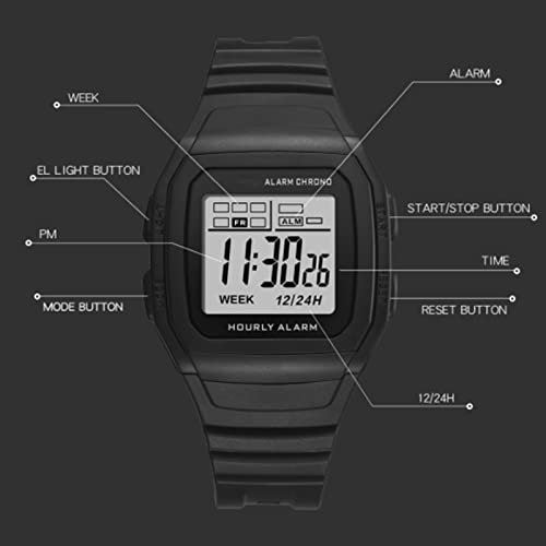 DESIGN REGOLABILE: l'orologio cronografo digitale adotta il design del cinturino regolabile, cinturino in plastica PU premium con fibbia in acciaio inossidabile, robusto e resistente.