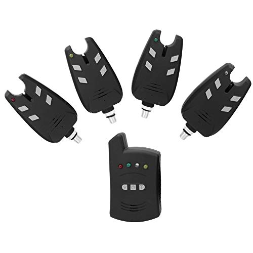 VGEBY 4 Pezzi Allarme abboccata da Pesca e 1 Pezzo Indicatore Ricevitore Allarme sonoro e Luce LED Accessori per Attrezzatura da Pesca Allarme Pesca elettronico Set Wireless