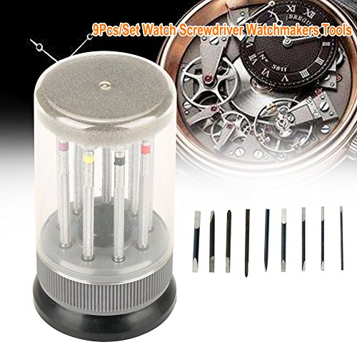 VGEBY1 9pcs Orologio cacciavite, Orologio da Polso in Metallo Multifunzione cacciavite a Taglio Set Strumenti di Riparazione Orologio con Piastra di Base Girevole