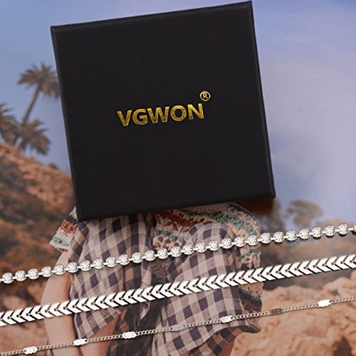 VGWON Cavigliera in Argento da Donna, Cavigliera Placcata in Oro 14K, Perline d'argento Tennis Rose Quartz Cross Catena di Graffette a Spina di Pesce Zirconia Set di Cavigliere a Strati Delicati
