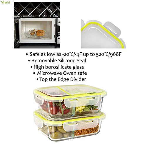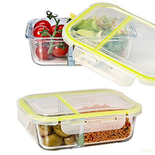 Vhari 2 contenitore per contenitori di cibo contenitore per alimenti (Set di 2 x 1040 ml) - Resistente alla tenuta e all'aria aperta - Congelatore, forno, lavastoviglie e forno a microonde