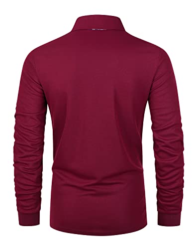 VHUQGVU Polo Uomo Manica Lunga Slim Fit Basic Golf Tessuto Comodo Poloshirt Tops,Rosso,XL