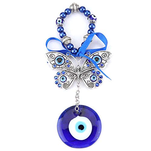 ViaGasaFamido Blue Evil Eye, 6,69 Pollici Turco Blu malocchio Farfalla benedizione Appeso amuleto Musulmano Appeso a Parete Home Decor Ciondolo protettore