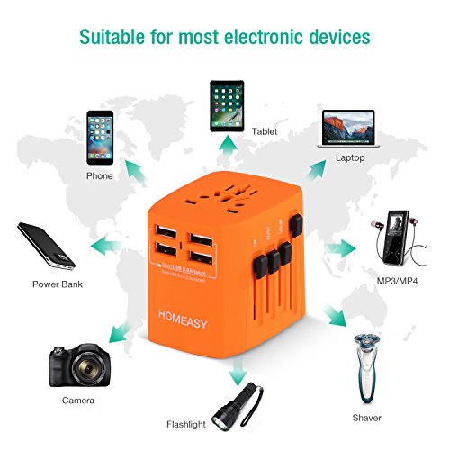 Viaggio Adattatore Internazionale homeasy con fusibile di sicurezza e 4 usb (5 V 2.4 A) per UE/US/UK/AUS utilizzato in più di 150 paesi