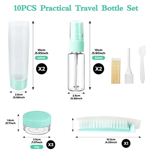 ‧ 【Set perfetto】 Il set di bottiglie da viaggio contiene 2 flaconi da 40 ml, 2 flaconi spray da 30 ml, 3 bicchieri da crema da 10 g, 1 pettine, 1 confezione di tamponi di cotone, 1 contagocce, 1 spatola, 1 scatola portaoggetti. La quantità può soddisfare le tue esigenze di viaggio.